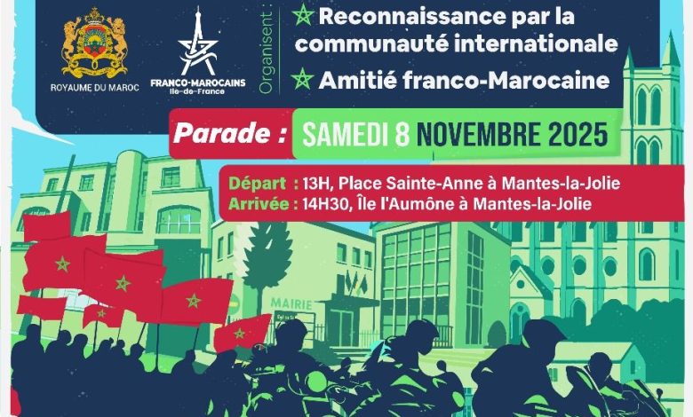 في أجواء وطنية مفعمة بالفخر والاعتزاز، وتزامناً مع الذكرى الخمسين للمسيرة الخضراء المظفرة واعتراف المجتمع الدولي بمغربية الصحراء، تشهد مدينة مانت لا جولي الفرنسية يوم السبت 8 نونبر 2025 حدثاً استثنائياً يجسد عمق الروابط المغربية الفرنسية ووحدة أبناء الجالية المغربية بالخارج.