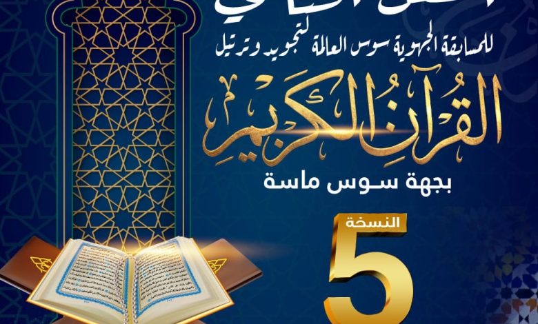 في أجواء إيمانية روحانية، تحتضن جهة سوس ماسة يوم السبت 7 مارس 2026، بمدرج غرفة التجارة والصناعة والخدمات بأكادير، فعاليات الحفل الختامي للمسابقة الجهوية “سوس العالمة” لتجويد وترتيل القرآن الكريم في نسختها الخامسة، وذلك بحضور ثلة من العلماء والقراء والأساتذة وفعاليات تربوية ومدنية وأسر المشاركين.