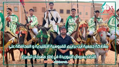 شاركت جمعية أيت براييم للفروسية التقليدية بعروض التبوريدة المنظمة بساحة شارع 30 بمناسبة فعاليات مهرجان تيميزار للفضة، والجمعية المذكورة ممثلة…