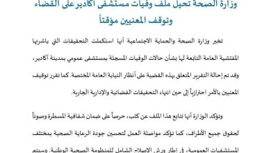 أصدرت المديرية الجهوية للصحة والحماية الاجتماعية بجهة سوس ماسة، اليوم الأربعاء، بلاغًا توضيحيًا حول حالة الوفاة التي سُجلت صباح يوم…