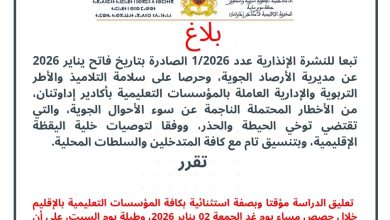 محمد المومن – أكادير قررت المديرية الإقليمية لوزارة التربية الوطنية والتعليم الأولي والرياضة بأكادير إداوتنان، تعليق الدراسة مؤقتًا وبصفة استثنائية…